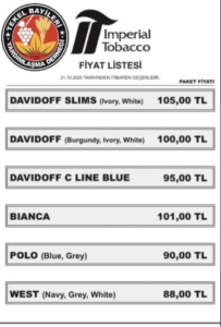 Dündar’ın paylaştığı yeni listeye göre grubun en ucuz sigarası 88 TL, en pahalı ürünü ise 105 TL’ye yükseldi.