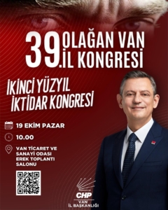 CHP Van İl Başkanlığı, “İkinci Yüzyıl İktidar Kongresi” sloganıyla 39. Olağan İl Kongresi’ni gerçekleştirmeye hazırlanıyor. Kongreye, CHP Genel Başkanı Özgür Özel ve beraberindeki üst düzey parti heyetinin katılım sağlayacağı öğrenildi.