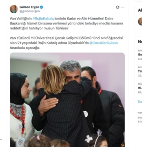 Ergen, “Van Valiliğinin #RojinKabaiş isminin Kadın ve Aile Hizmetleri Daire Başkanlığı hizmet binasına verilmesi yönündeki belediye meclisi kararını reddettiğini hatırlıyor musun Türkiye?” diye sordu.