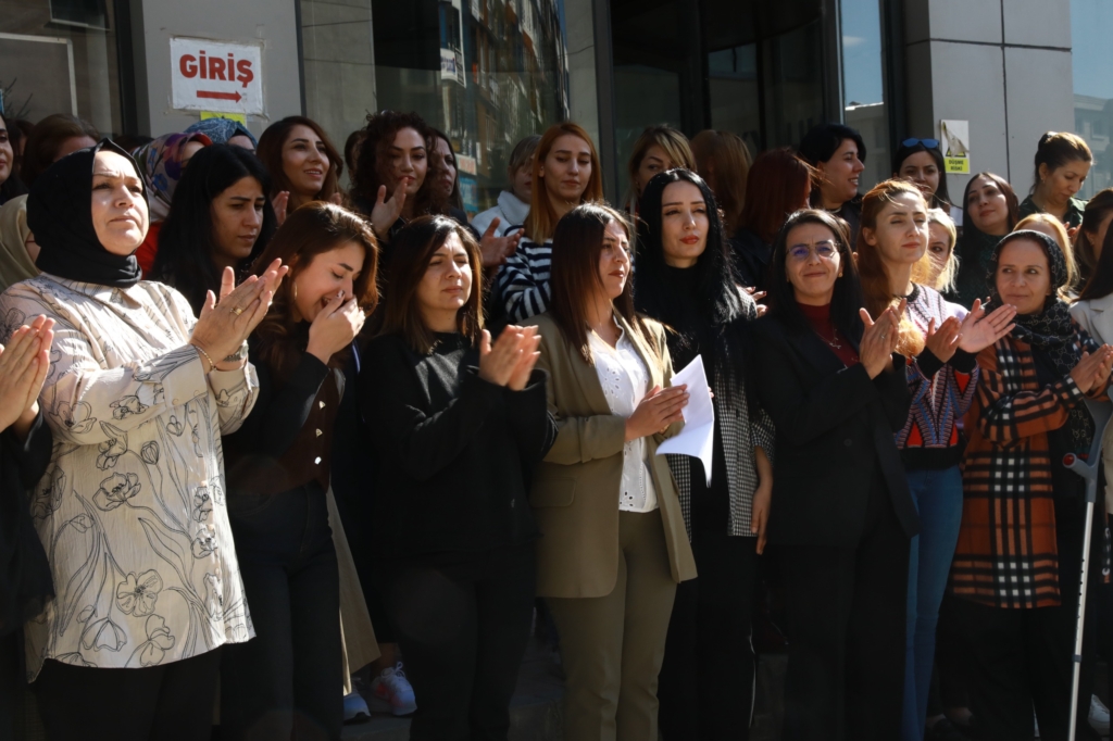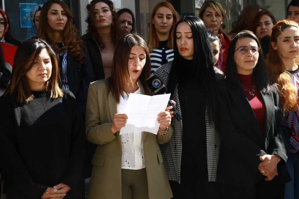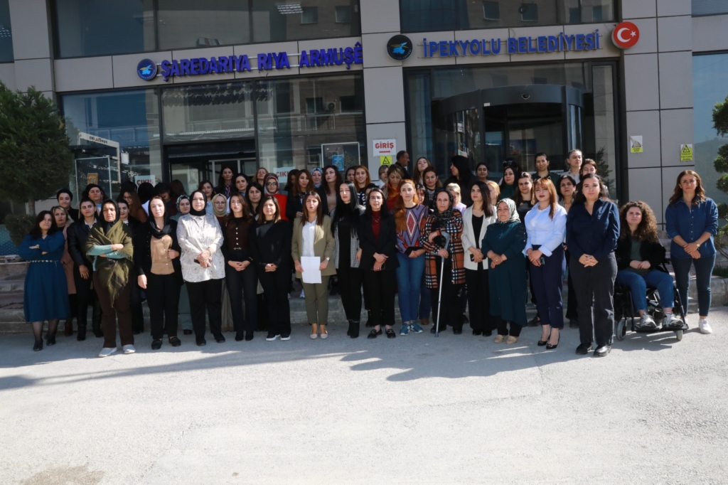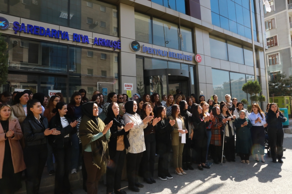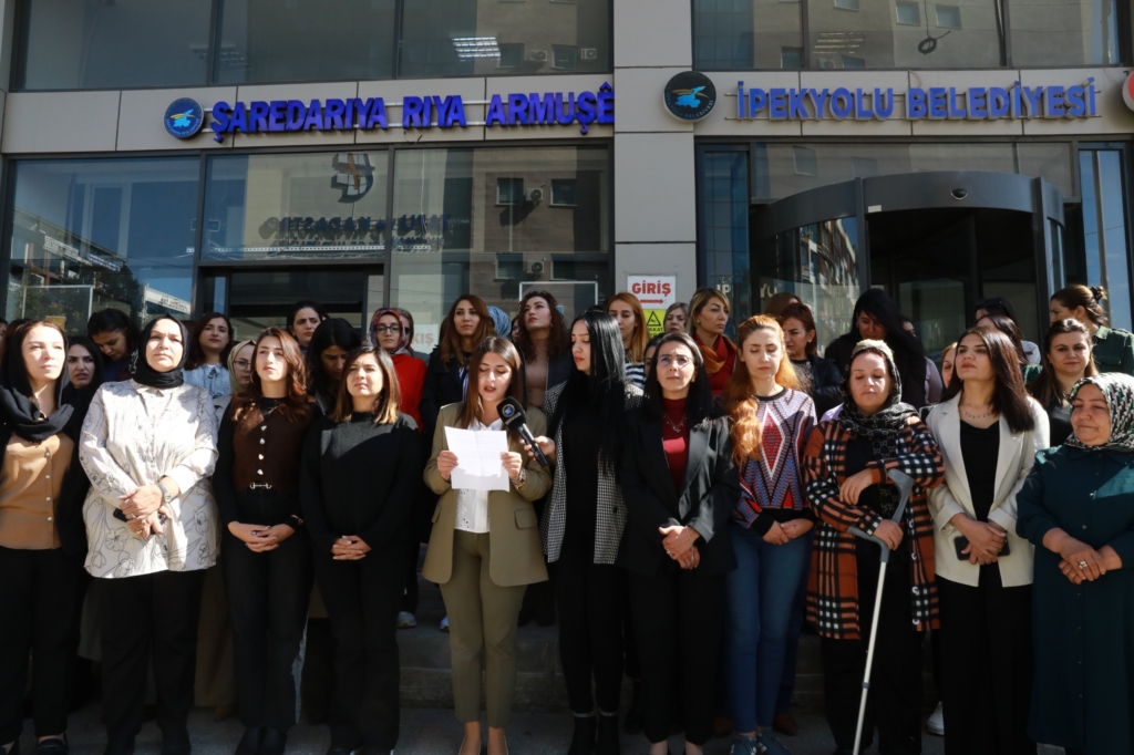 Belediye binası önünde yapılan açıklamaya, İpekyolu Belediye Eşbaşkanı Canan Uzunay, Kadın Meclisi üyeleri ve belediye meclis üyeleri katıldı.
