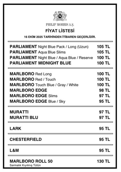 Firmanın sigara markalarının en ucuzu 95 liraya, ortalama fiyatlar ise 100-105 liraya yükseltildi.