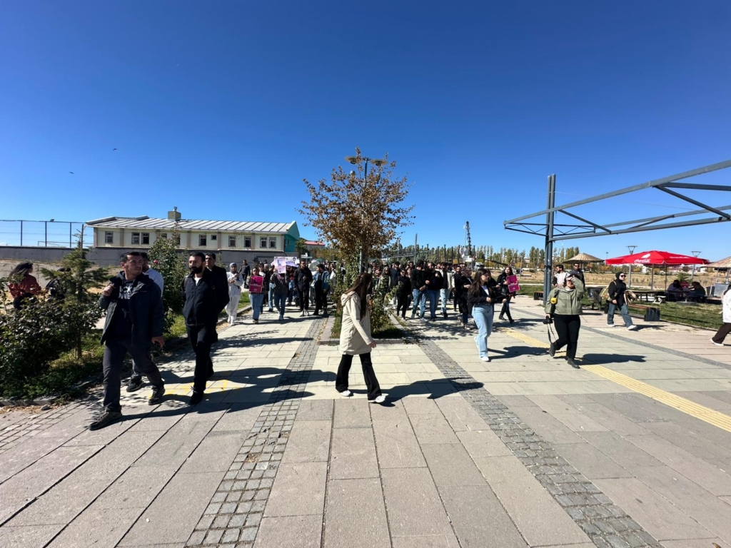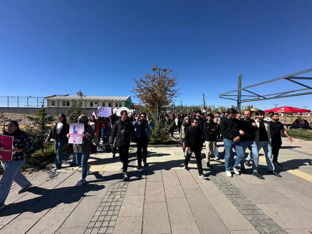 Üniversite kampüsünde başlayan yürüyüş halen devam ediyor.