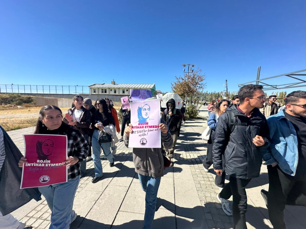 Van Yüzüncü Yıl Üniversitesi’nde yüzlerce öğrenci, Rojin Kabaiş’in ölümünün aydınlatılması için kampüs içinde yürüyüş düzenledi.