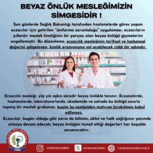Yapılan açıklamada, beyaz önlüğün eczacılar için sadece bir kıyafet değil, yüz yılı aşkın süredir halkın güvenini ve bilimin rehberliğini temsil eden bir mesleki sembol olduğu belirtildi. “Eczacılık mesleği, eczanelerde, hastanelerde, laboratuvarlarda ve akademide beyaz önlükle tanınmıştır. Bu değerli sembolün ortadan kaldırılması kabul edilemez,” denildi.
